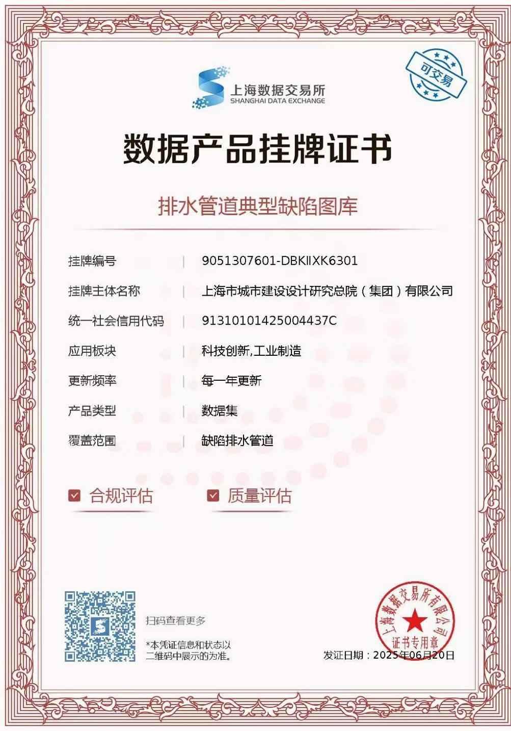 本次挂牌不仅是技术成果的体现,更是隧道股份城建设计集团积极响应国家数据要素市场化配置改革、推动公共数据资源高效利用的重要实践。“排水管道典型缺陷图库”进入公开交易市场后,将面向规划设计单位、管网检测企业、科研院所、市政管理部门、政府决策部门等广泛赋能,为提升城市基础设施智慧化管理水平注入新动能。